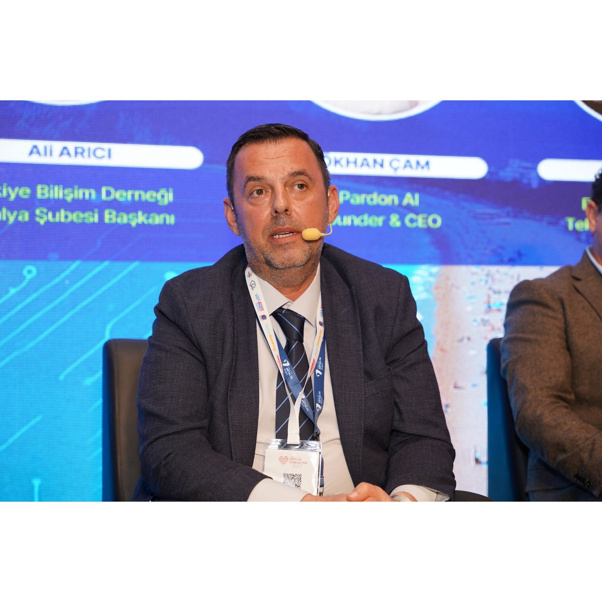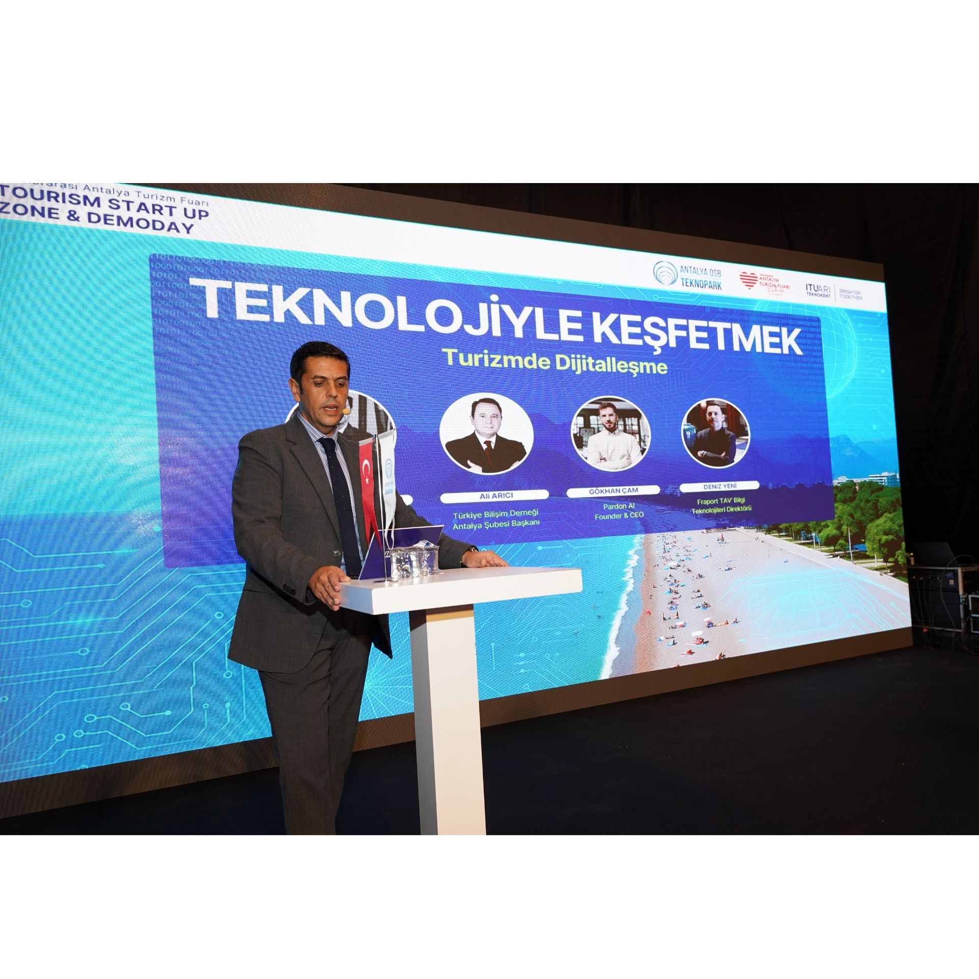 The panel, moderated by Tankut Mülayimsi, Director of Global Programs and Partnerships at İTÜ ARI Teknokent, featured Ali Arıcı, President of the Antalya Branch of Türkiye Bilişim Derneği, Gökhan Çam, Founder of Pardon AI, and Deniz Yeni, Director of Information Technologies at Fraport TAV, as speakers.