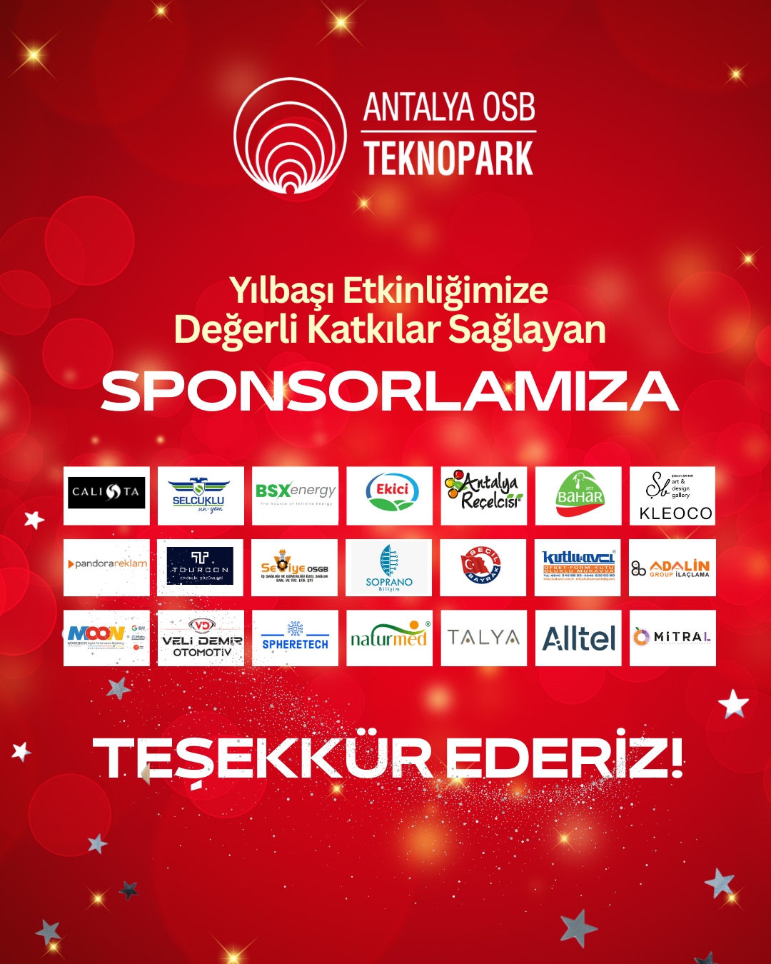 Yılbaşı etkinliğimize katkı sunan, çekilişimize ürünleriyle destek olan girişimci firmalarımıza ve bölgemizin değerli sanayicilerine gönülden teşekkür ederiz.